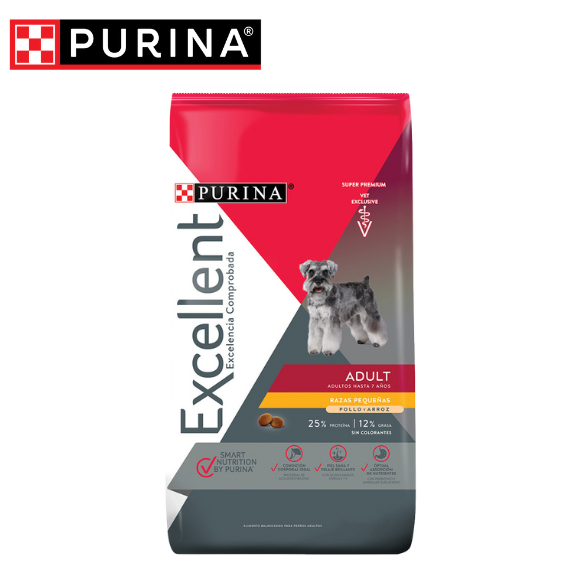Excellent Adultos Pollo y Arroz está formulado como un alimento seco super premium para perros adultos de razas pequeñas (hasta 10 kg). Su receta proporciona una nutrición completa y balanceada, adaptada al metabolismo acelerado y las necesidades energéticas de perros mini y pequeños, con croquetas diseñadas para su mandíbula reducida.
