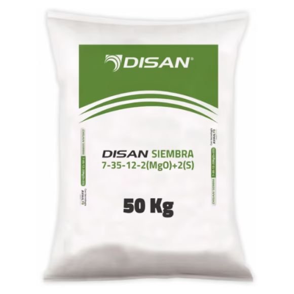 DISAN Inicio 7-35-12-2-2. Fertilizante NPK con fósforo recubierto, magnesio y azufre. Ideal para la siembra y desarrollo radicular. Presentación 50 kg.