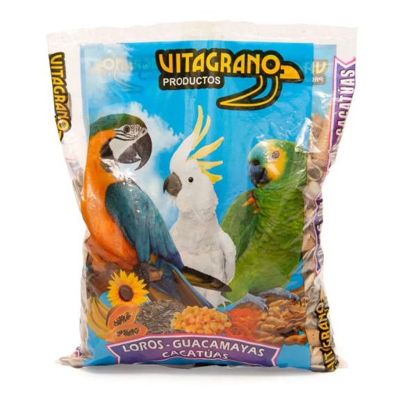 Loros, Guacamayas y Cacatúas es un alimento balanceado natural especialmente formulado para aves grandes. Contiene una mezcla de semillas seleccionadas, frutas deshidratadas y granos energéticos que aportan vitaminas, minerales y antioxidantes esenciales para mantener un plumaje brillante, energía constante y buena digestión. Ideal para el bienestar diario de loros, guacamayas, y cacatúas.